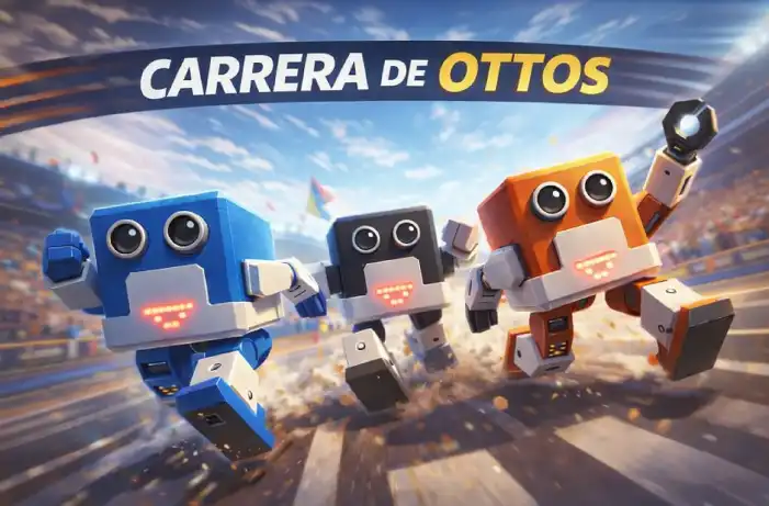 Otto es un robot bípedo educativo orientado a la enseñanza de programación, electrónica y fundamentos de robótica. Su nivel de dificultad es introductorio, ideal para estudiantes y primeros proyectos STEM. Generalmente se fabrica mediante impresión 3D para su estructura, incorporando servomotores, una placa microcontroladora compatible con Arduino, sensores y batería recargable. Permite desarrollar habilidades en ensamblaje, control de movimiento, lógica de programación y diseño de competencias como carreras o coreografías sincronizadas.
